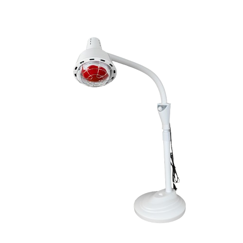 La lámpara infrarroja de pedestal tiene una potencia máxima de 275 W y un rango de iluminación de hasta 5 metros, lo que la hace ideal para sesiones de terapia de luz efectivas. Con una vida útil de más de 3000 horas, ofrece durabilidad y rendimiento continuo. Además, incluye un control remoto para comodidad y un diseño que permite girar 360 grados, brindando flexibilidad en su uso para tratar diversas áreas del cuerpo.